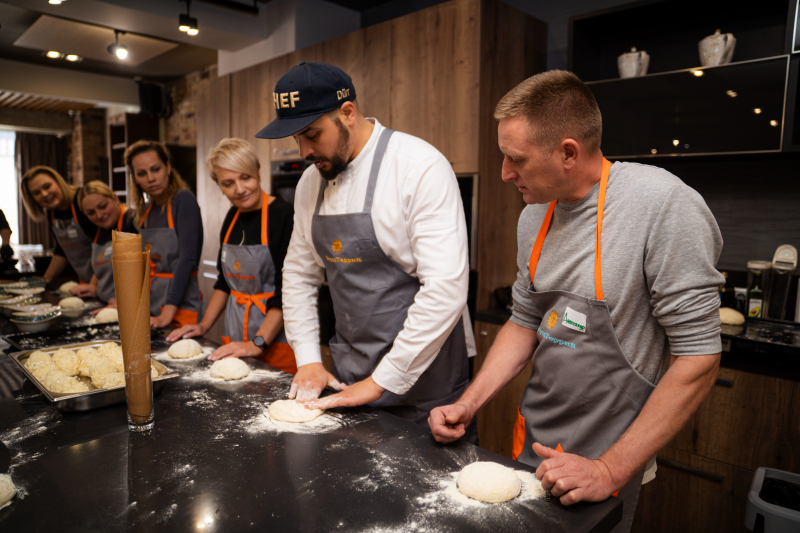 Тимбилдинг московских компаний Холдинга «СОЦИУМ» прошёл в формате мастер-класса по грузинской кухне. Кулинарный поединок в студии «Вкусотеррия»